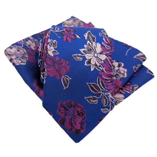 Royal Blue Floral Silk Wedding Tie