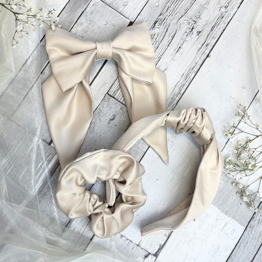 This collection includes fabric bows, hair slides and stylish clips designed for weddings and events.