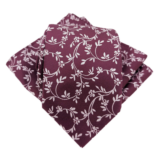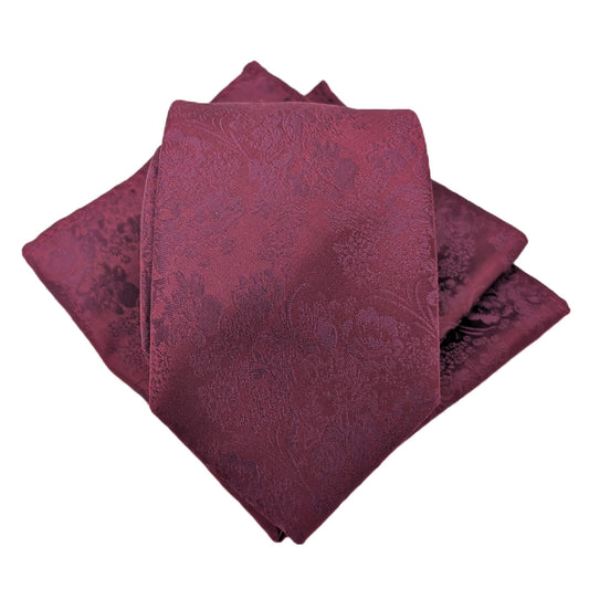 Mix and Match - Cassis Patterned & Cassis Wedding Tie Set