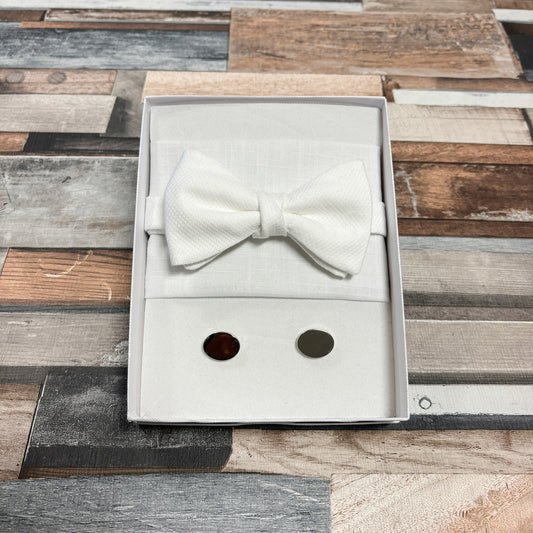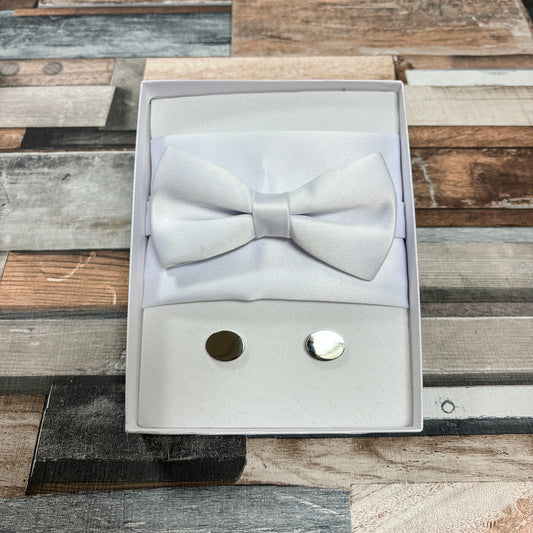 White Shantung Bow Tie & Socks Boxed Gift Set