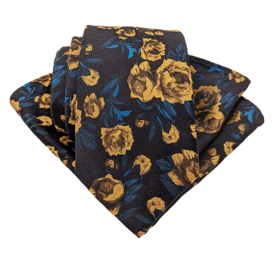 Midnight Gold Rose Wedding Tie