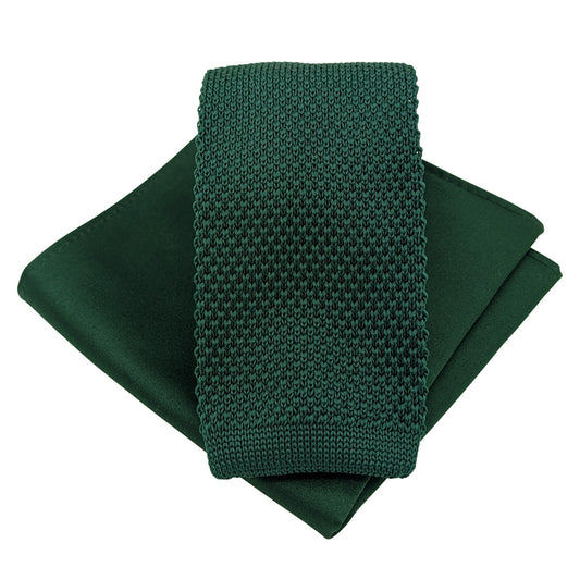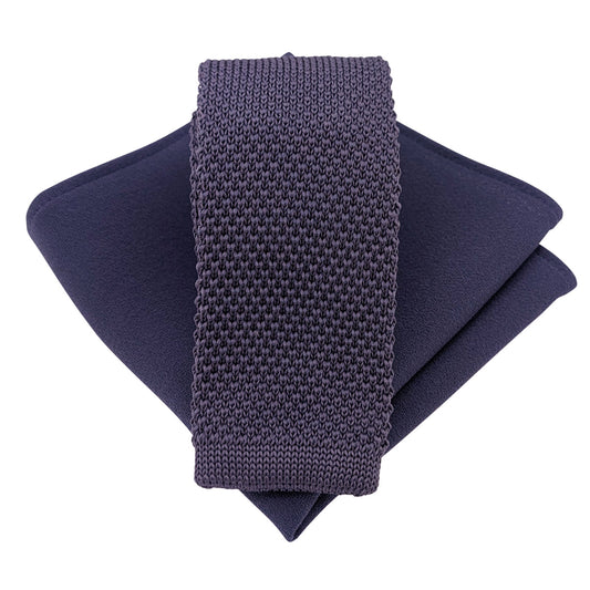 Some ties include matching knit pocket squares. Where a knit match isn’t available, a coordinated satin pocket square is paired to preserve colour harmony.