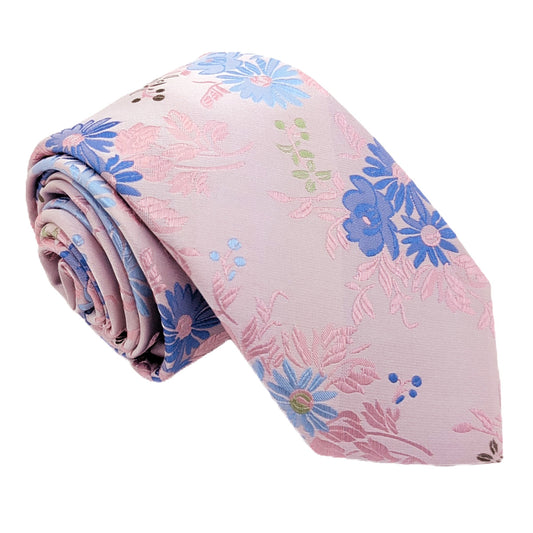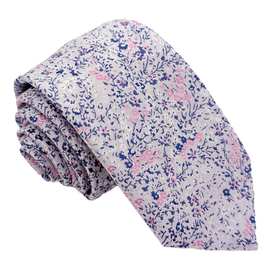Pink & Silver Ditsy Floral Wedding Tie