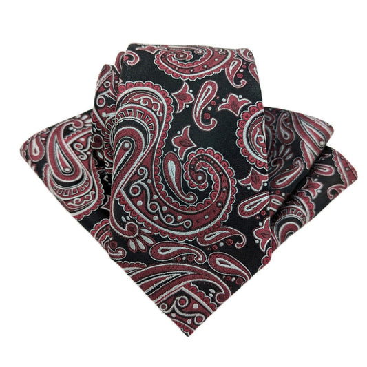 Black & Wine Paisley Pocket Square