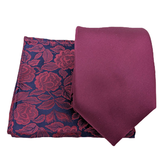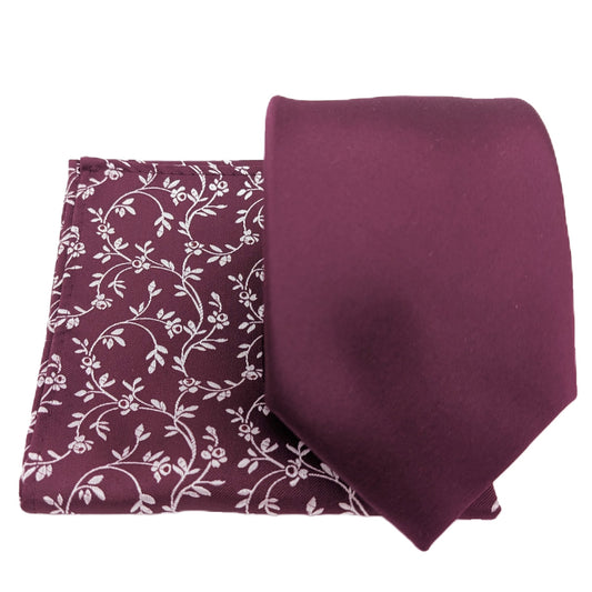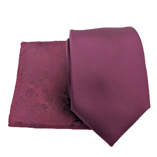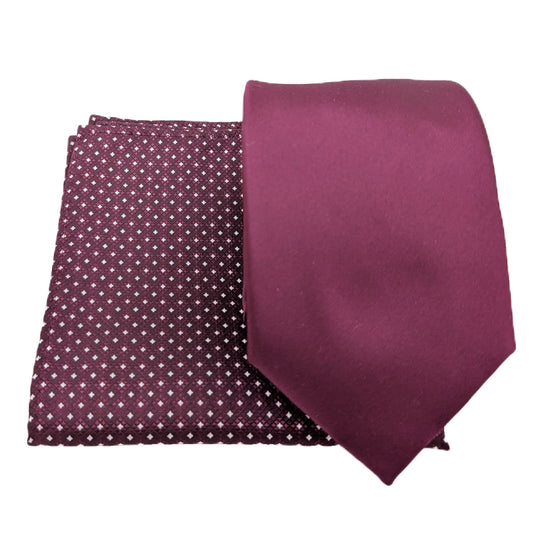 Mix and Match - Cassis Patterned & Cassis Wedding Tie Set