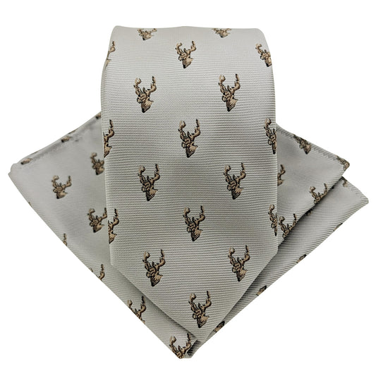 Pearl Grey Stags Wedding Tie