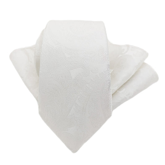 White Paisley Silk Wedding Tie