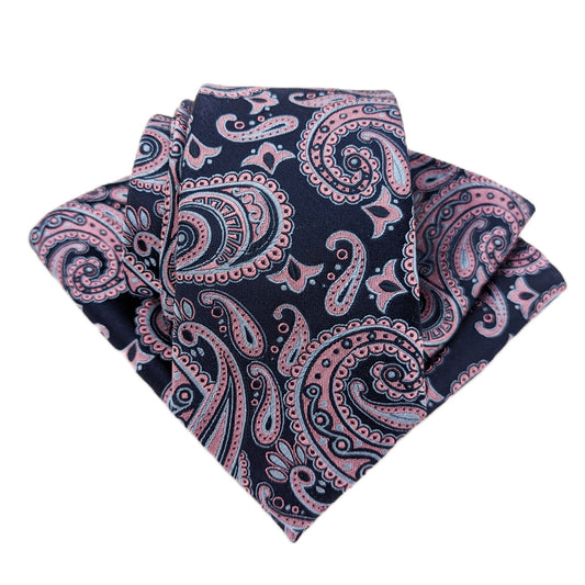 Navy & Pink Paisley Wedding Tie