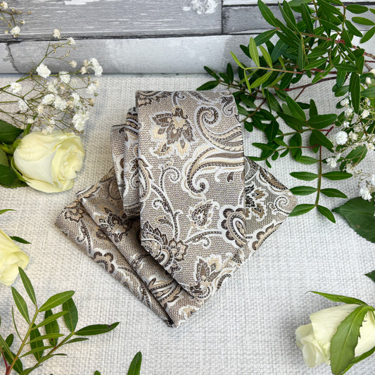 This collection brings together a wide range of wedding ties designed specifically for colour matching and formal coordination. From timeless neutrals and deep formal tones to soft pastels and seasonal colours, each tie is selected to support consistent styling alongside bridesmaid dresses, florals and venue décor. Many couples begin with a colour palette first, using ties as a reliable way to echo those tones across suits and accessories.