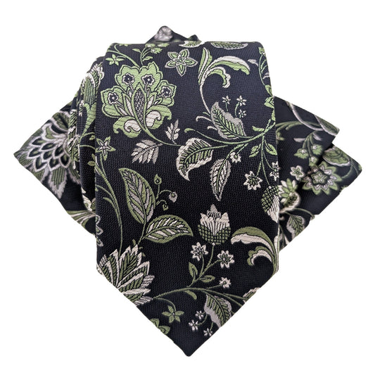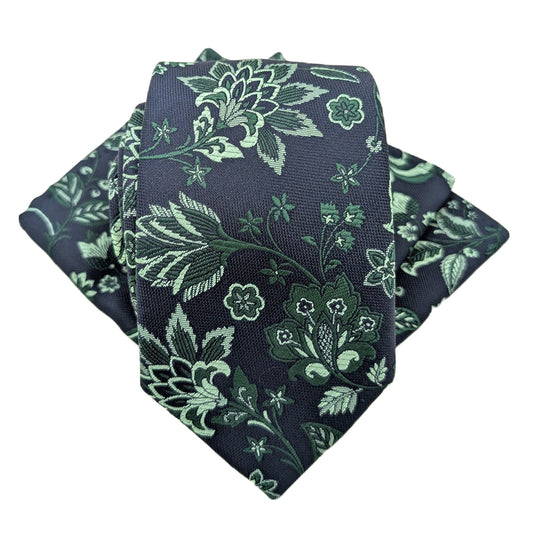 Dark Green Floral Wedding Tie
