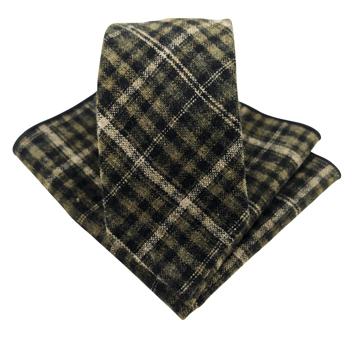 Fabric swatch for the Black & Green Check wedding tie, for checking colour and fabric texture.