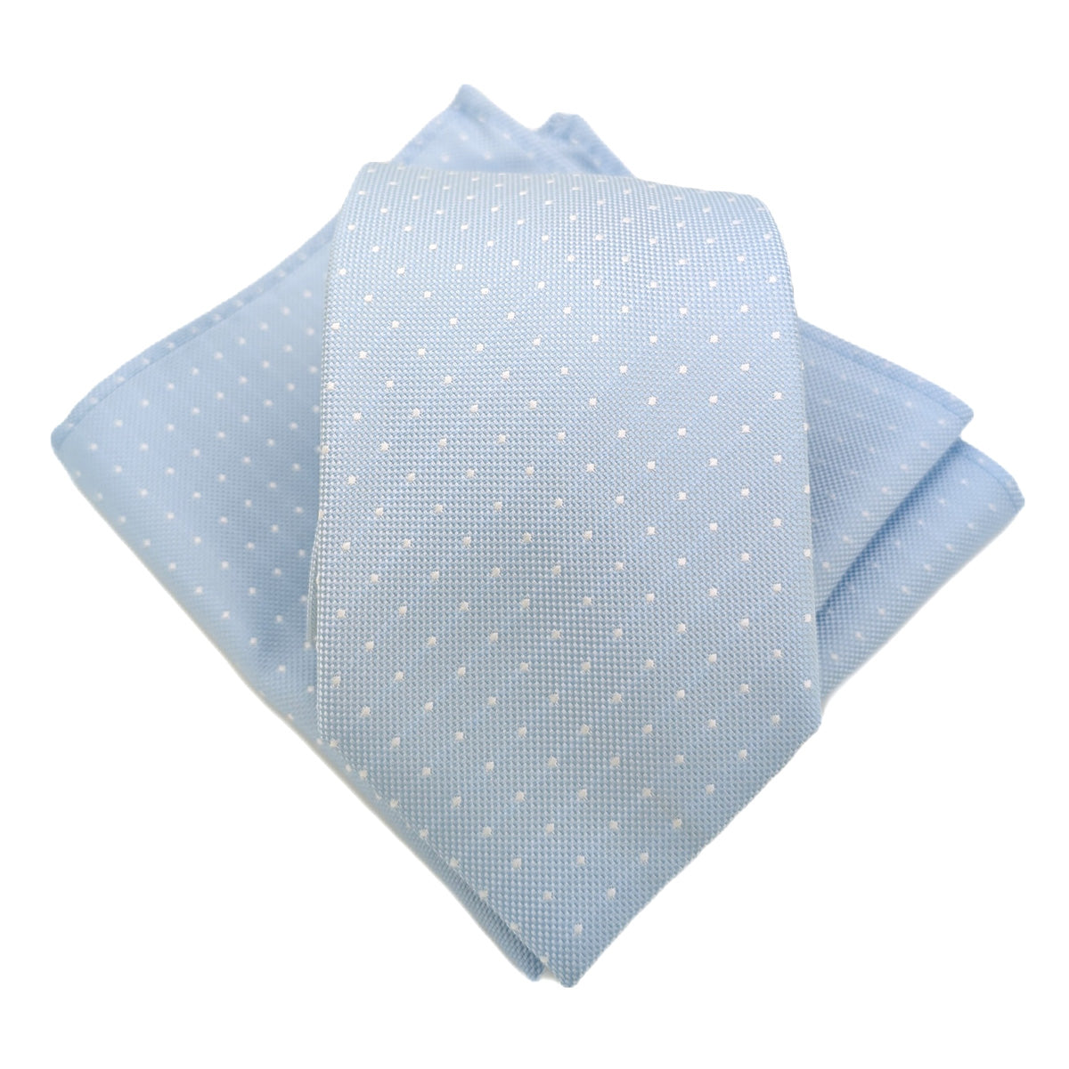 A patterned, Cloudy Blue Pin Dots wedding tie, the perfect accessory for the groom and groomsmen on your wedding day!