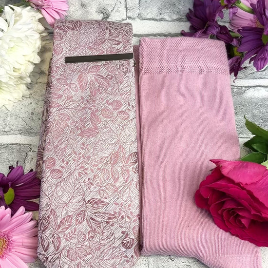 Desert Rose Woodland Leaves Tie & Socks Gift Set