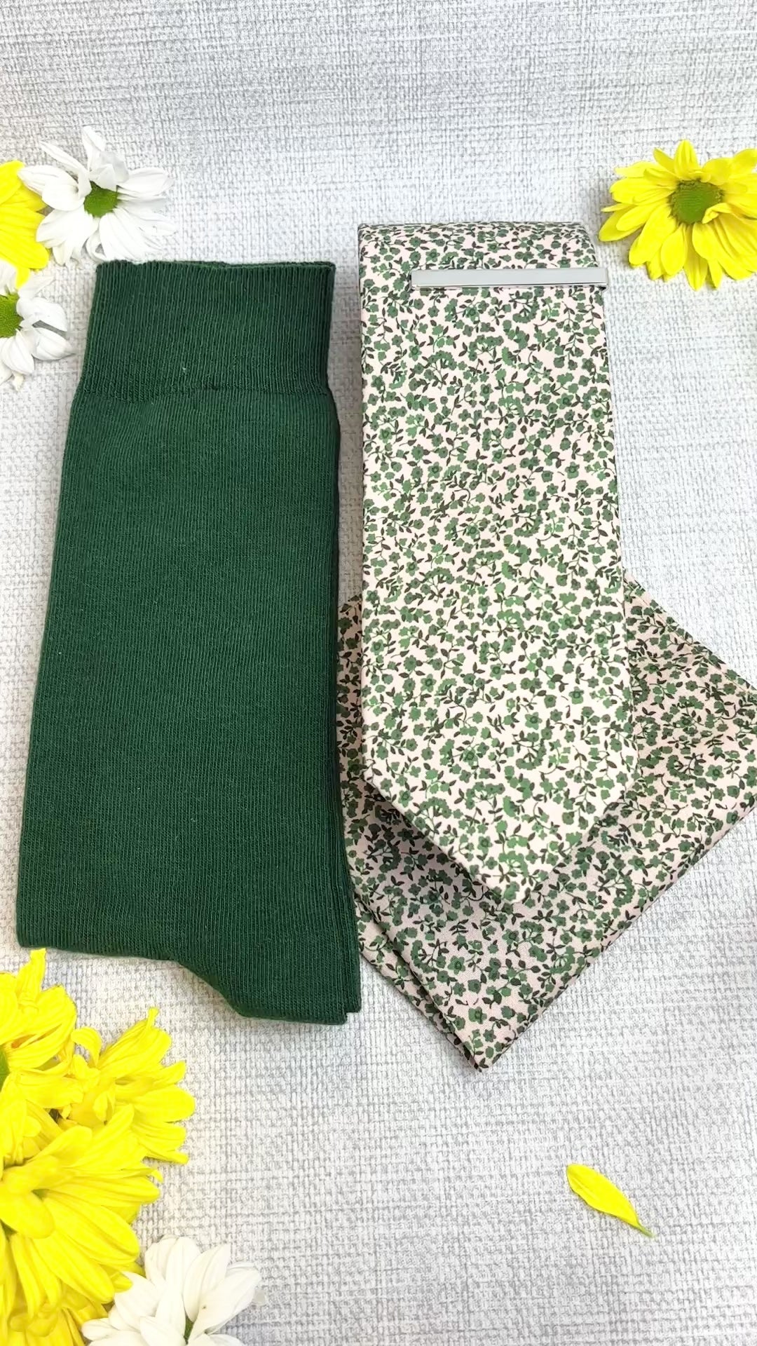 Emerald Floral Cotton Tie & Socks Gift Set