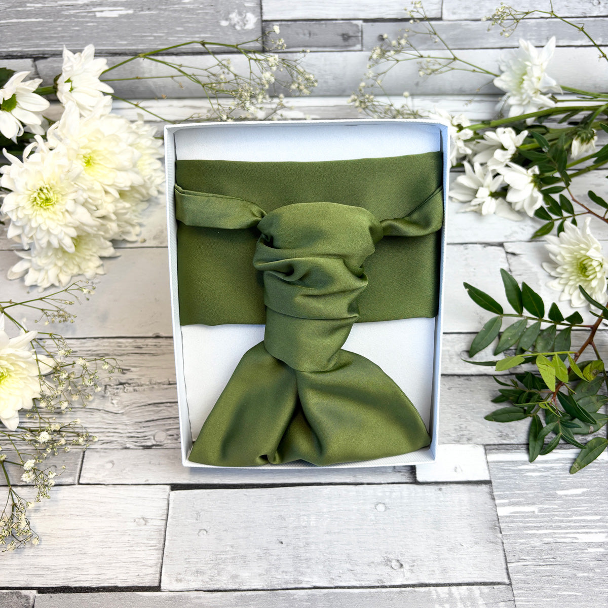 A plain, Ivy coloured wedding cravat, the perfect accessory for the groom or groomsmen on your wedding day!