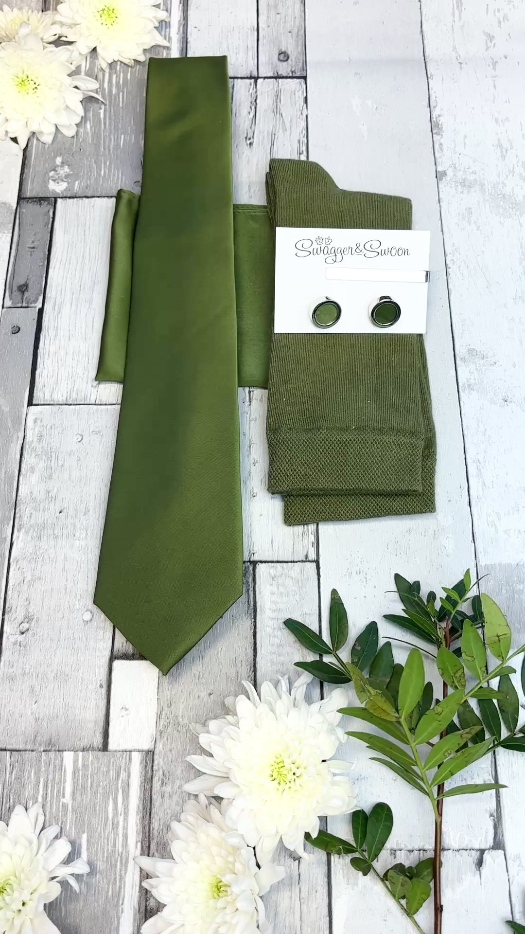 If you're looking for a perfectly curated gift set then look no further! This stunning white presentation box combines a Ivy coloured wedding tie, matching pocket square and socks!