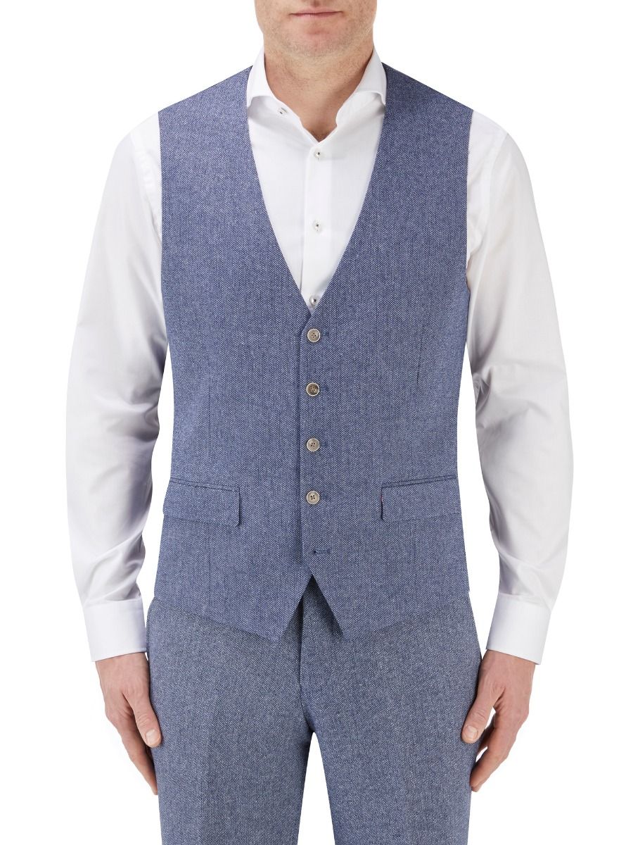 This charmingly chic blue herringbone suit is perfect for all your upcoming plans. Complete with a waistcoat and trousers, there's no doubt it's the ideal choice for any event, especially a wedding! Oh, and have you checked out the lining?