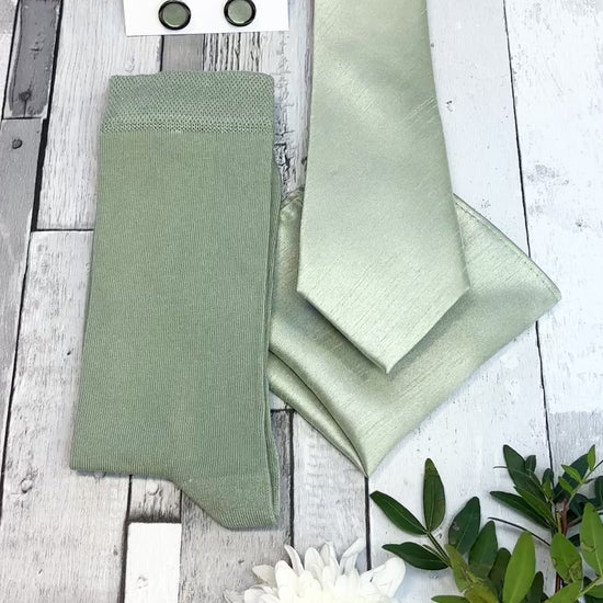 Light Sage Shantung Tie & Socks Gift Set