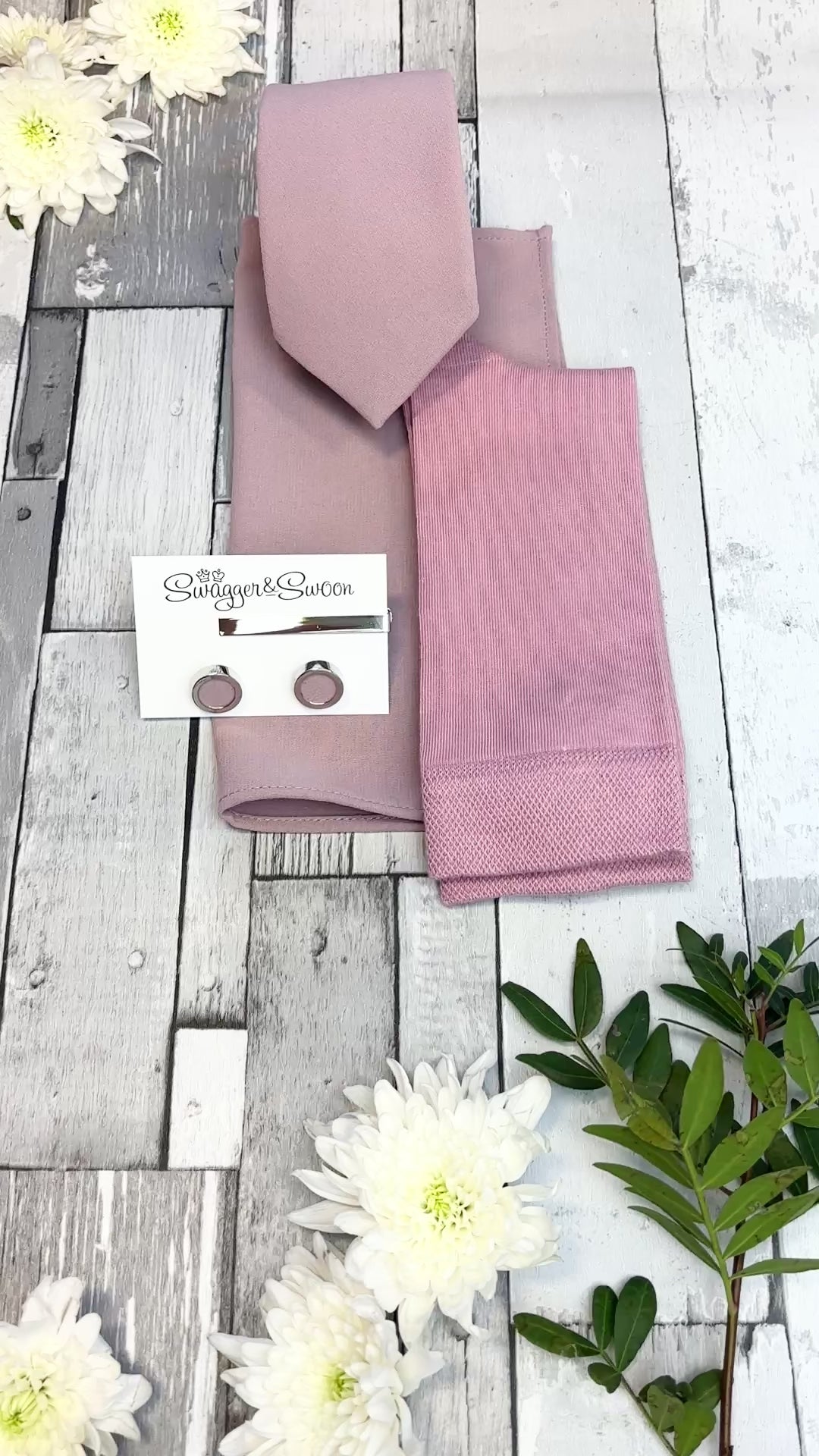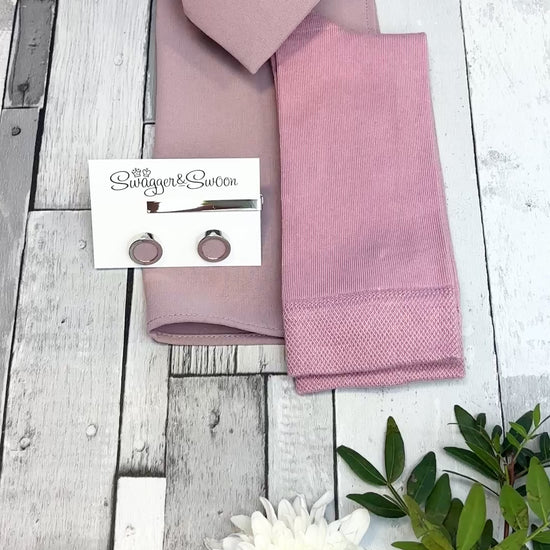 If you're looking for a perfectly curated gift set then look no further! This stunning white presentation box combines a Lilac Rose coloured wedding tie, matching pocket square and socks!