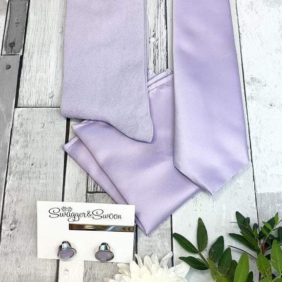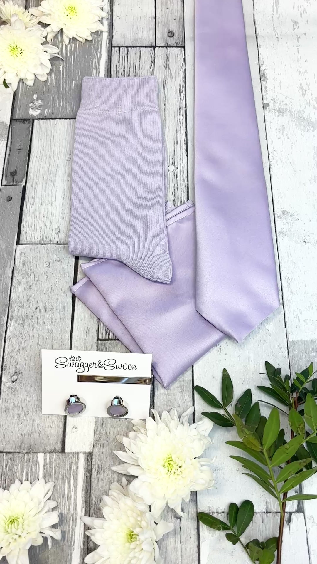 If you're looking for a perfectly curated gift set then look no further! This stunning white presentation box combines a Mauve coloured wedding tie, matching pocket square and socks!