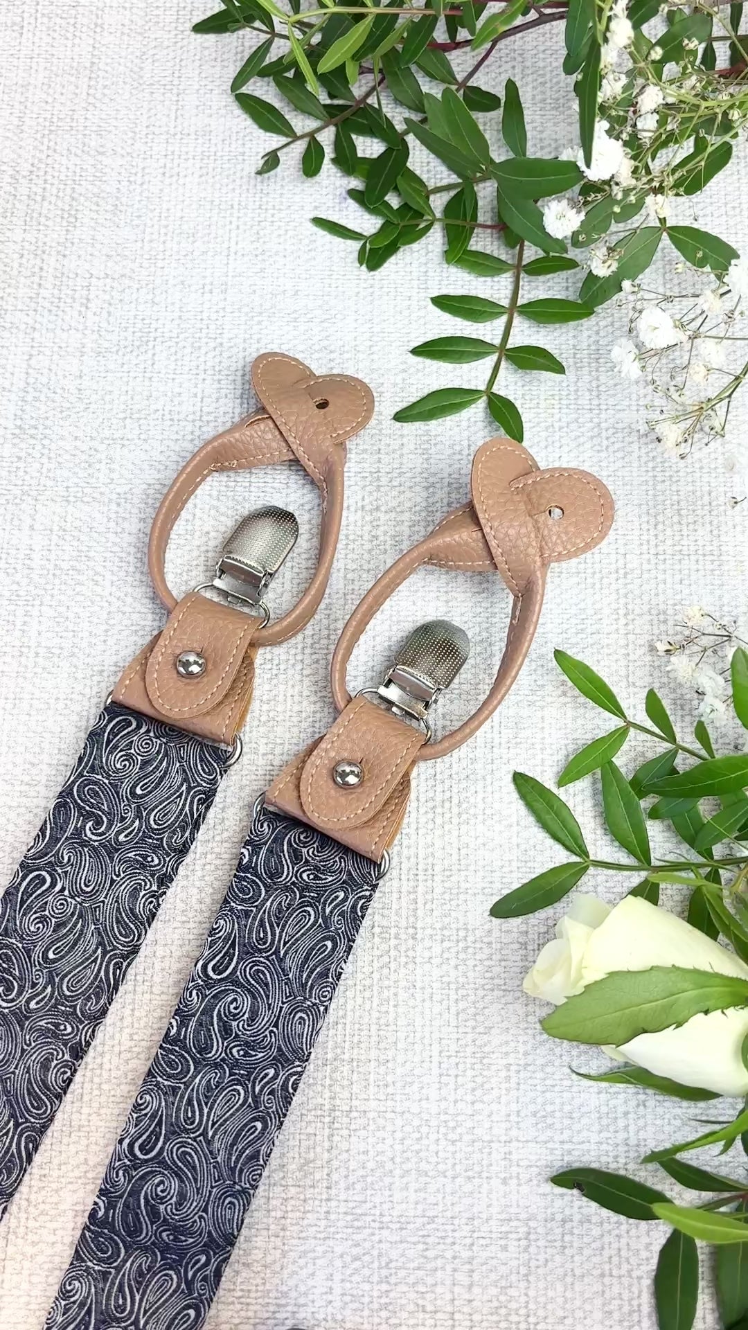 Refined, versatile, and designed for special occasions, our Navy Paisley convertible wedding braces bring a polished finish to your wedding attire. Crafted with a fabric panel to match the ties from centre-back to front waist and an elasticated back for comfort, they offer a subtle statement that complements wedding attire and smart tailoring alike.