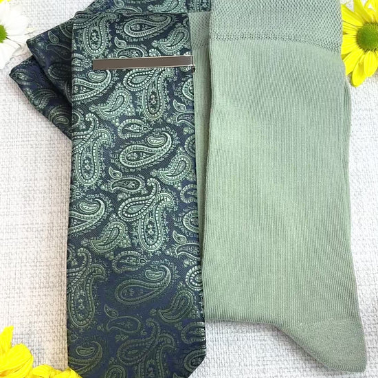 Navy & Sage Paisley Tie & Socks Gift Set