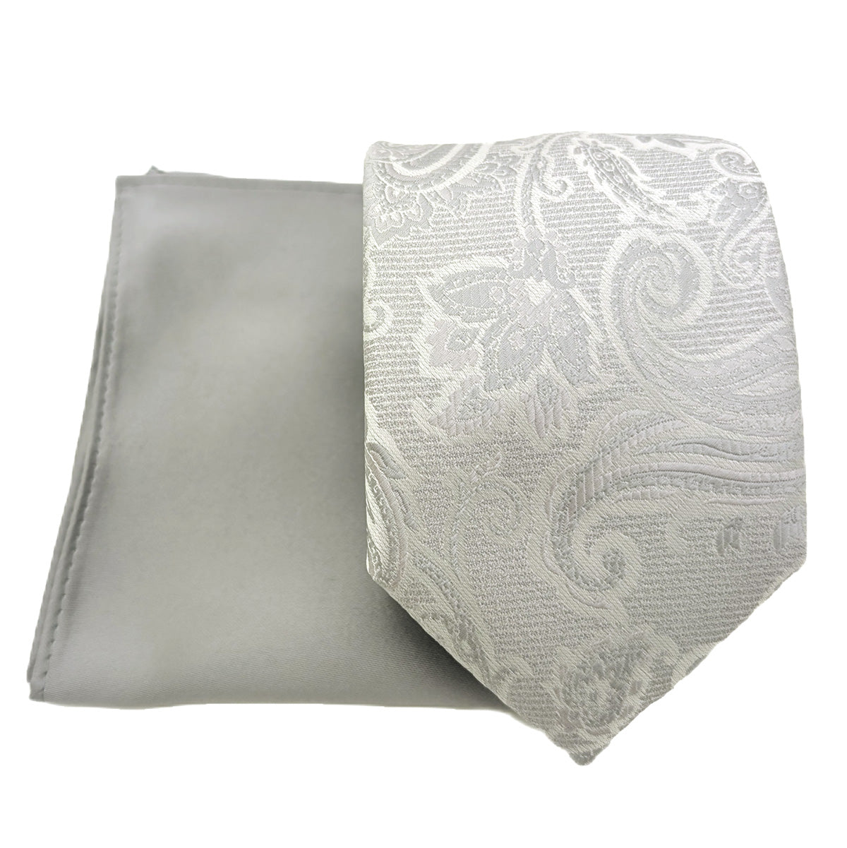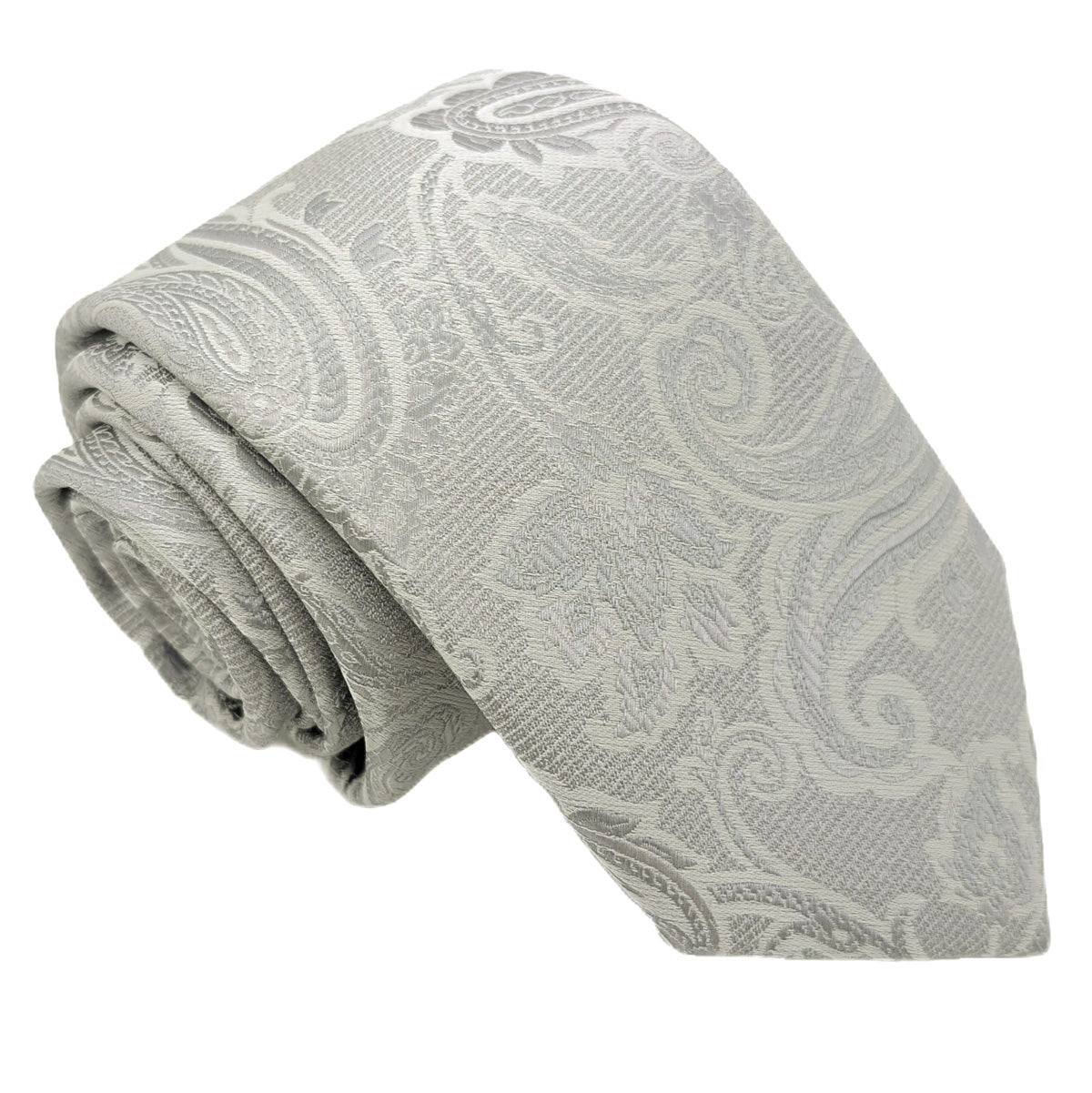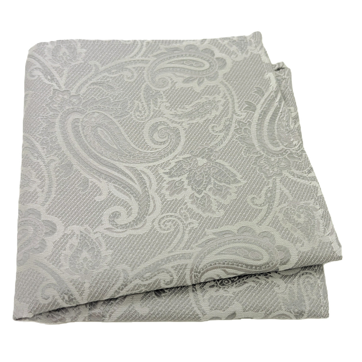 Fabric swatch for the Pearl Grey Baroque Paisleywedding tie, for checking colour and fabric texture.