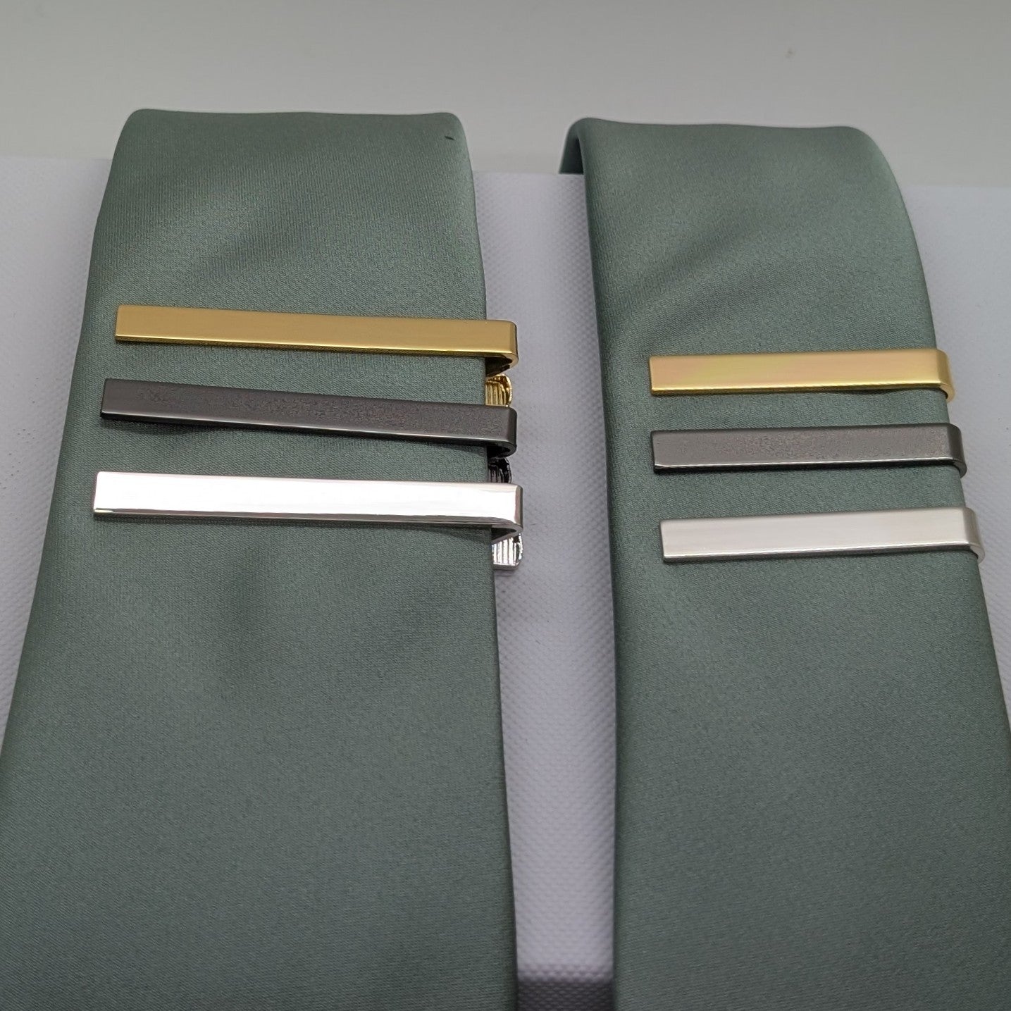 A selection of Tie Clips, great as a little gift for the groom and groomsmen, available in 3 colours, Silver, Black & Gold