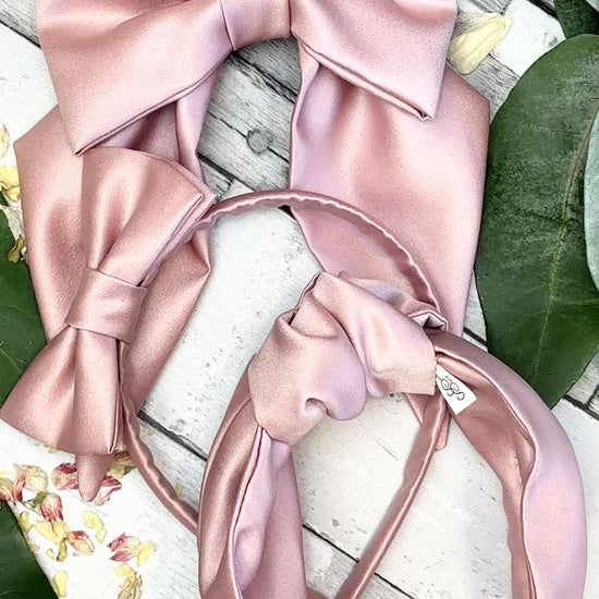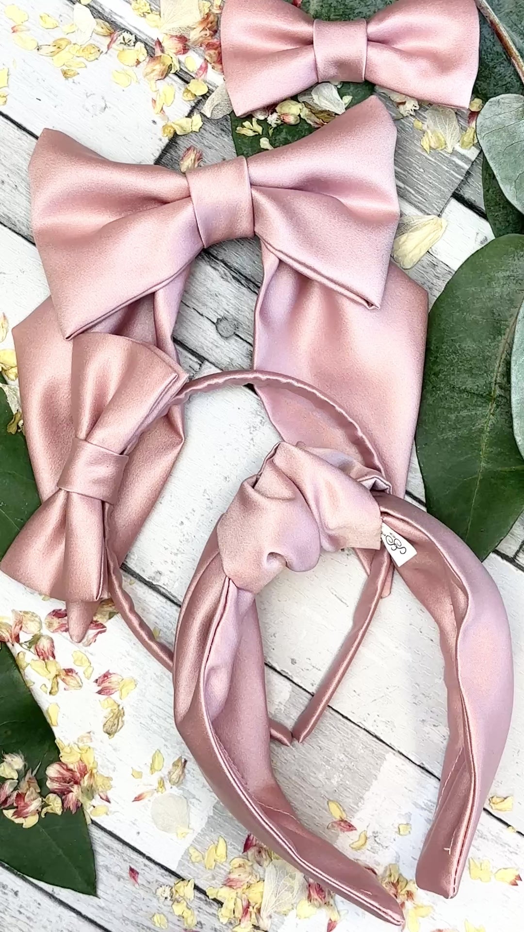Our elegant light Rose Gold hair accessories are the perfect way to match the groomsmen and complete the wedding party! Add a flash of colour to add to your hair with this pussy hair bow that has a handy barrette clip for ease of use.