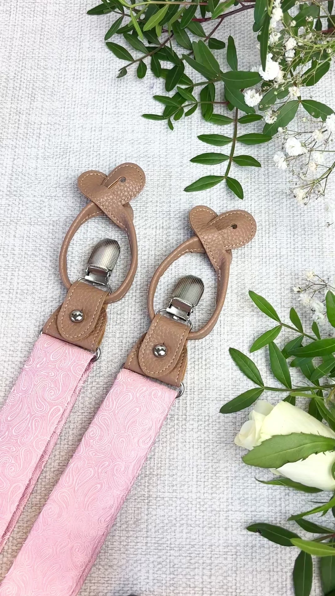 Refined, versatile, and designed for special occasions, our Rose Pink Paisley convertible wedding braces bring a polished finish to your wedding attire. Crafted with a fabric panel to match the ties from centre-back to front waist and an elasticated back for comfort, they offer a subtle statement that complements wedding attire and smart tailoring alike.