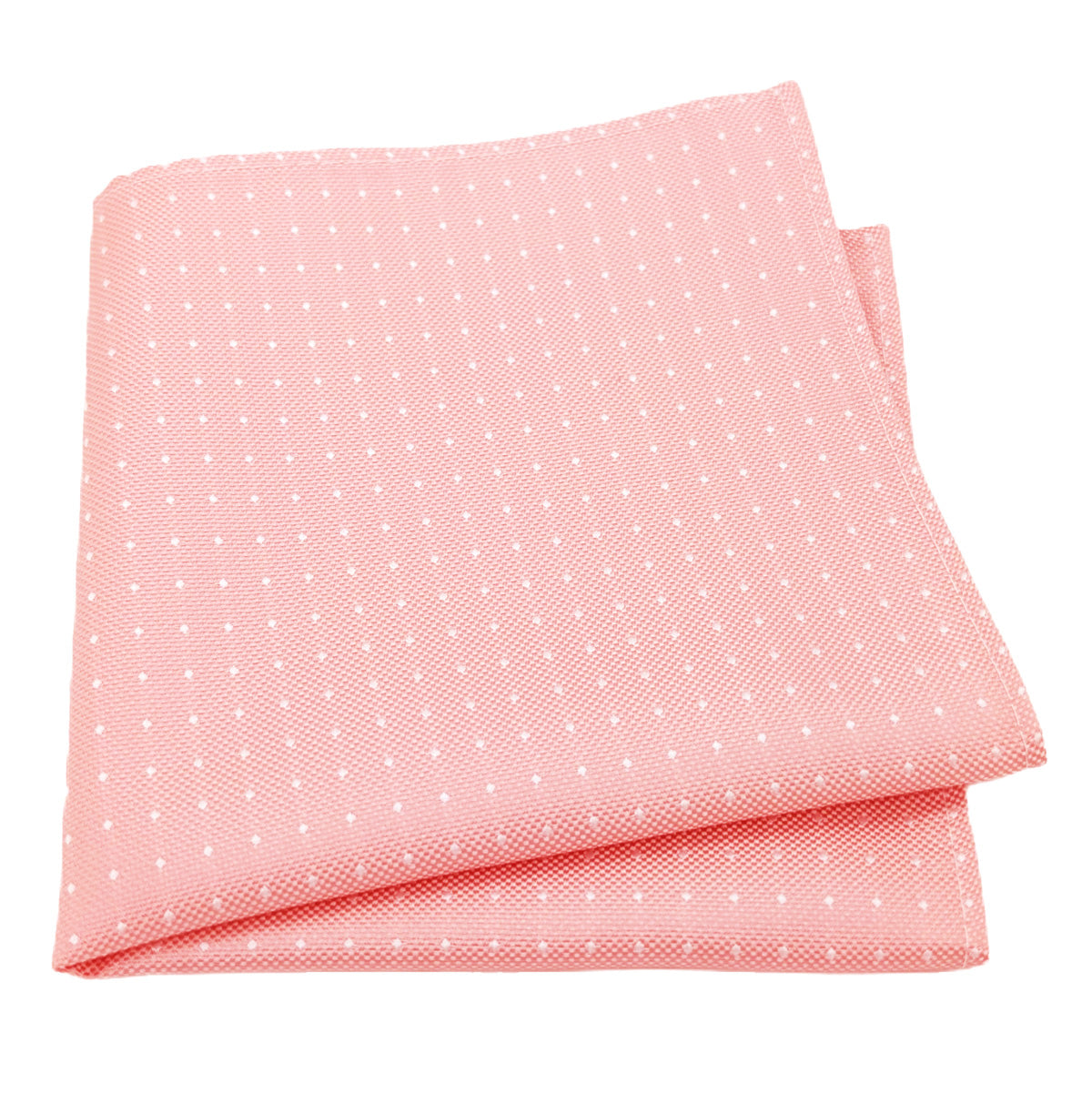 Fabric swatch for the Rose Pink Pin Dotswedding tie, for checking colour and fabric texture.