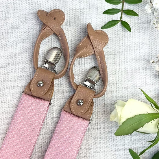 Refined, versatile, and designed for special occasions, our Rose Pink Woven convertible wedding braces bring a polished finish to your wedding attire. Crafted with a fabric panel to match the ties from centre-back to front waist and an elasticated back for comfort, they offer a subtle statement that complements wedding attire and smart tailoring alike.