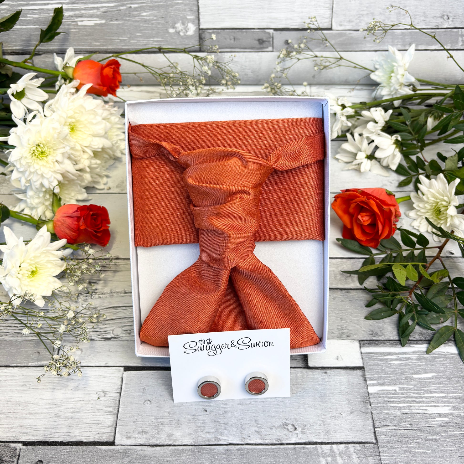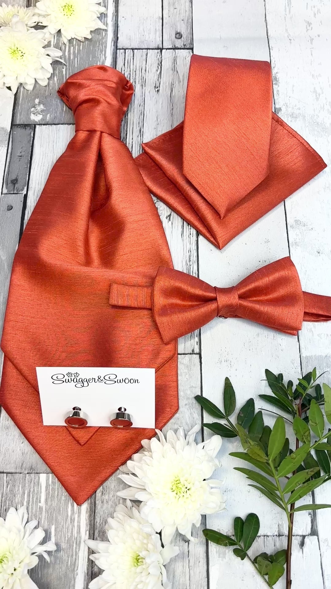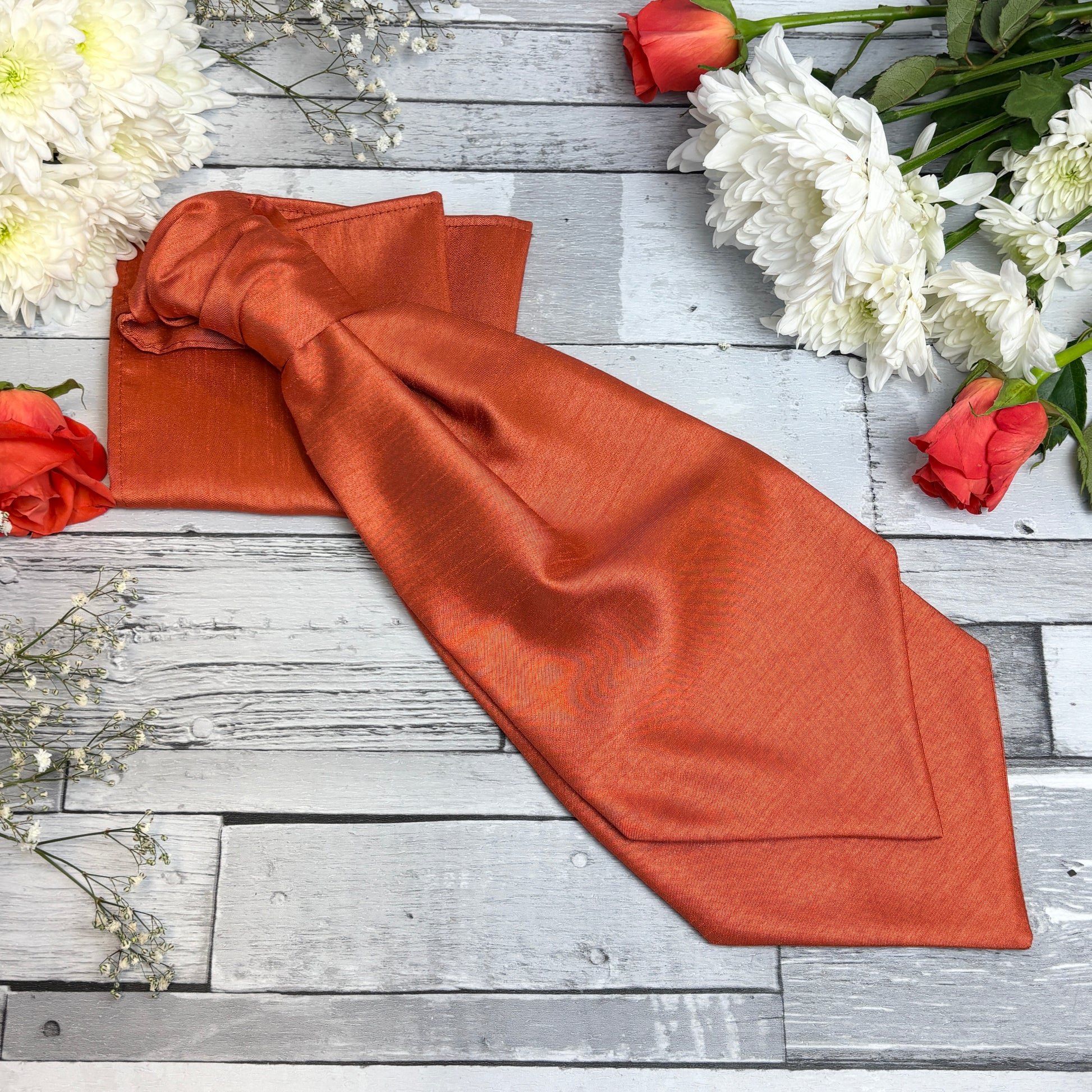 A plain, Rust Shantung coloured wedding cravat, the perfect accessory for the groom or groomsmen on your wedding day!