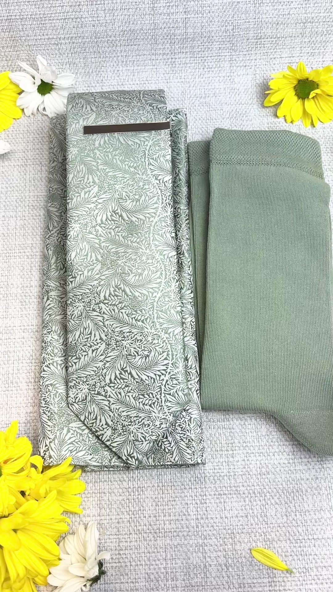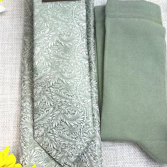 A patterned, Sage & Silver Leaves wedding tie, the perfect accessory for the groom and groomsmen on your wedding day!