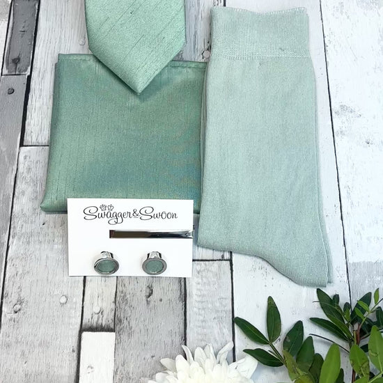 A plain seagrass shantung effect handkerchief with a textured diagonal effect that mimics silk shantung.