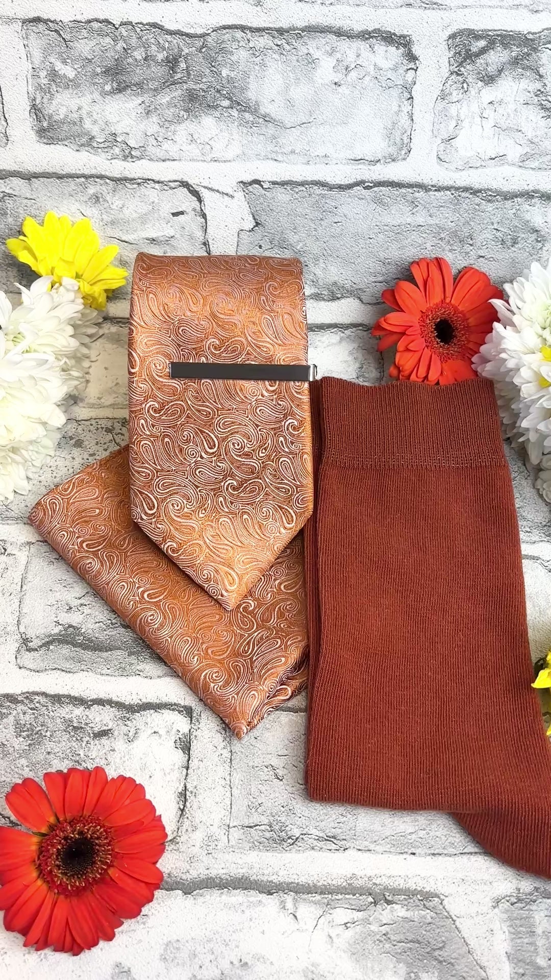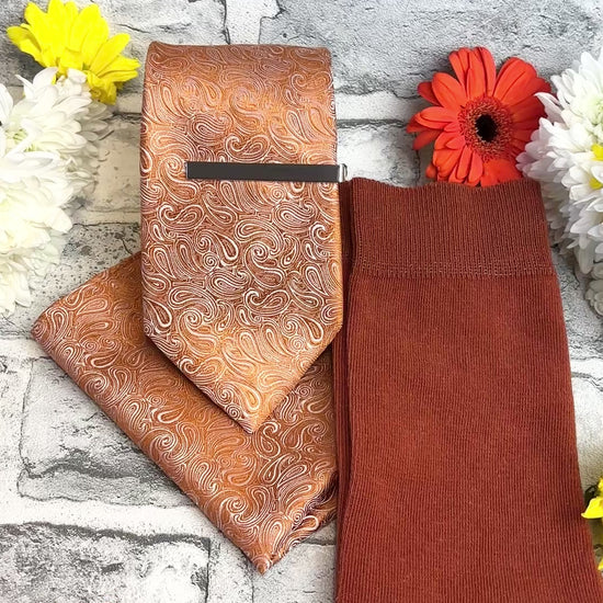 A patterned, Spice Paisley wedding pocket square, the perfect accessory to complement a matching tie or bow for the groom and groomsmen on your wedding day!