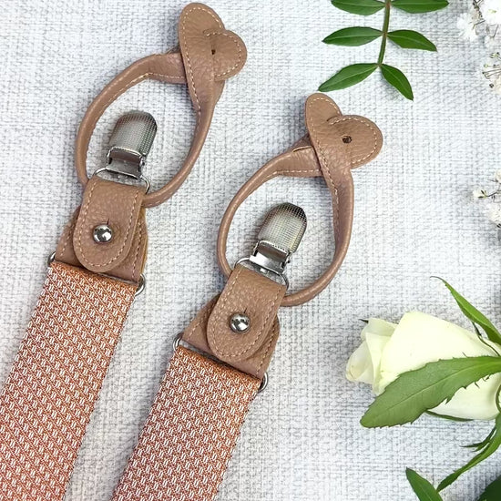 Refined, versatile, and designed for special occasions, our Spice Woven convertible wedding braces bring a polished finish to your wedding attire. Crafted with a fabric panel to match the ties from centre-back to front waist and an elasticated back for comfort, they offer a subtle statement that complements wedding attire and smart tailoring alike.