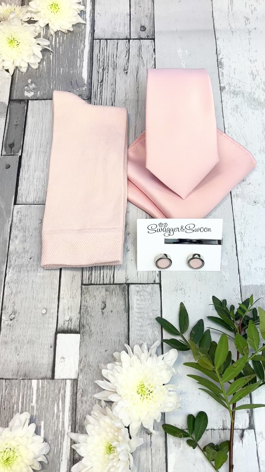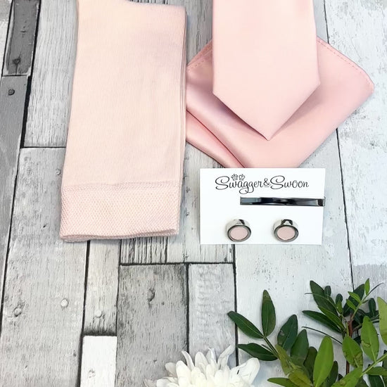 If you're looking for a perfectly curated gift set then look no further! This stunning white presentation box combines a Vintage Rose coloured wedding tie, matching pocket square and socks!