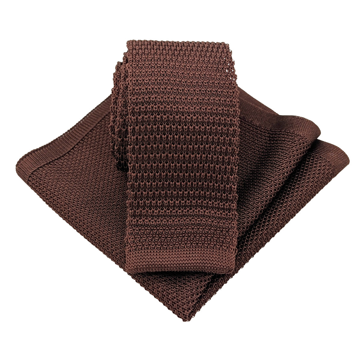 A square-ended, knitted, Walnut coloured wedding tie, the perfect accessory for the groom and groomsmen on your wedding day!